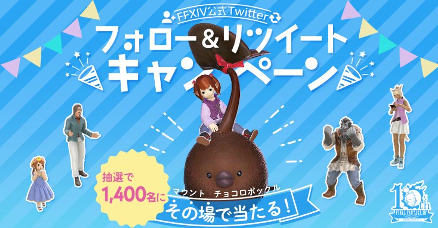 スポンサーリンク スポンサーリンク 「FF14新生10周年記念Twitterキャンペーン第3弾」が実施!抽選で1400名にマウント「チョコロポックル」が当たる! 馬鳥速報 続きを読む X Facebook はてブ LINE 2023.07.14 続きを読む