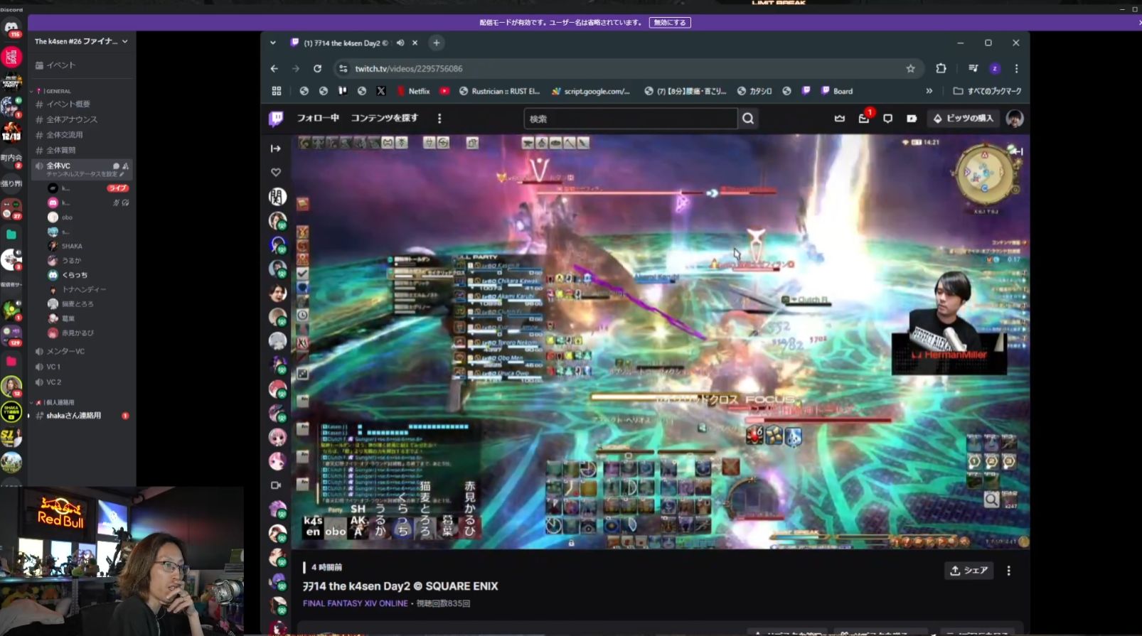 ◆釈迦さんの配信より録画を見直してギミックの攻略をガチ相談する「FFXIV The k4sen」メンバー