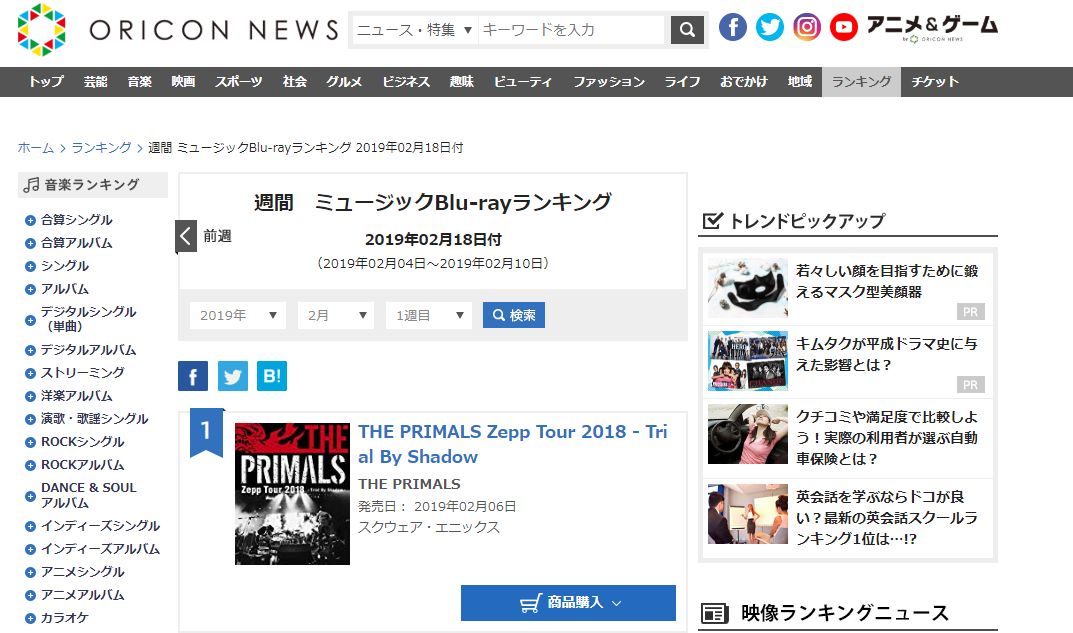 スポンサーリンク スポンサーリンク 【FF14】2月6日発売の「THE PRIMALS Zepp Tour 2018 – Trial By Shadow」がオリコン週間ミュージックBlu-rayランキング1位に! 馬鳥速報 続きを読む X Facebook はてブ LINE 2019.02.16 続きを読む